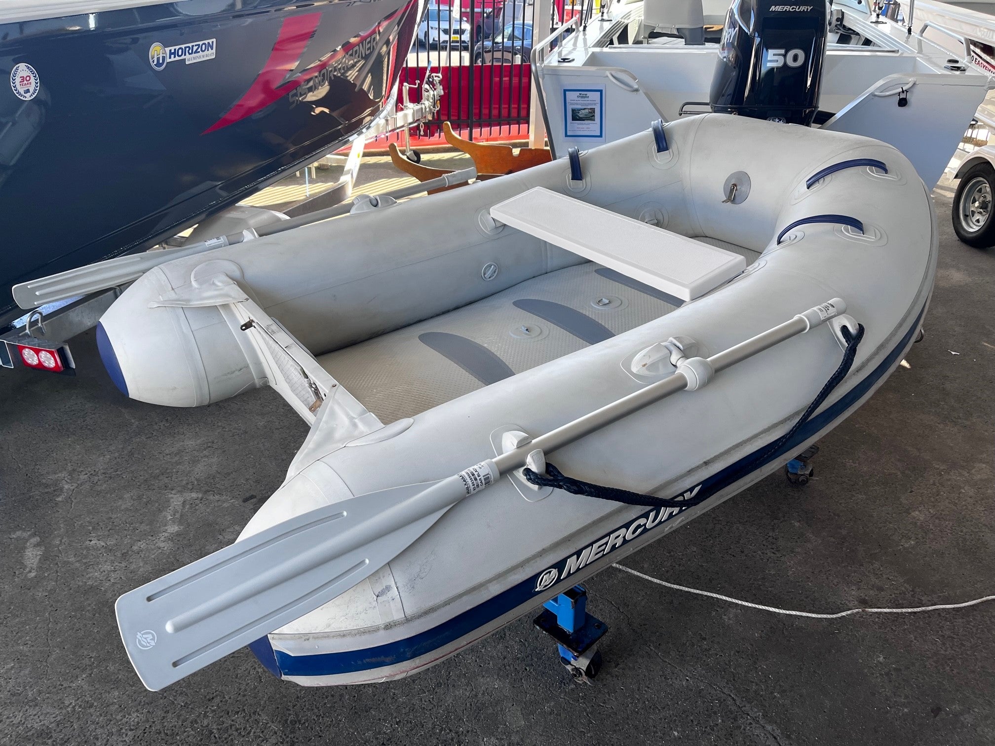 Length - 3.48m , Beam - 1.65m, Weight - 58kgs, Capacity - 6 adults, Max HP - 25hp Short shaft